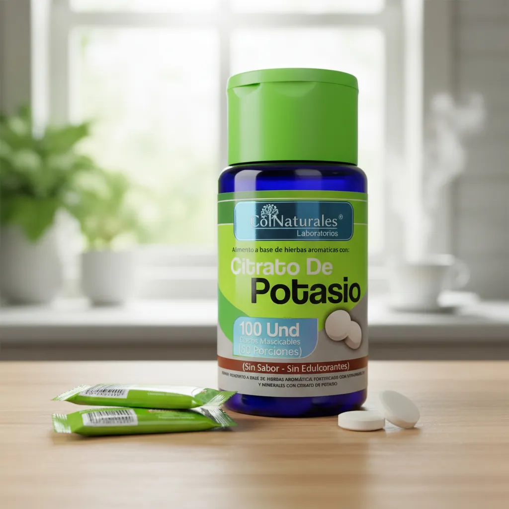 El Citrato de Potasio en Discos Masticables es un alimento funcional pensado para quienes buscan un aporte cómodo y preciso de potasio elemental, clave para la contracción muscular, la transmisión nerviosa y el mantenimiento de una presión arterial saludable.